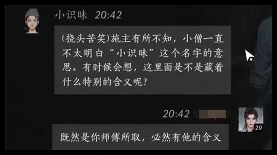 小识昧闻言后会露出若有所悟的神情,语气趋于柔和,随之展开更深层的心性交流,为后续好感度积累奠定基础。