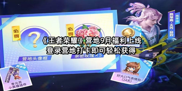 王者荣耀营地为玩家们带来了9月的福利活动,让大家在畅享游戏的同时,轻松获得丰富奖励。从9月19日至9月30日,玩家只需登录营地并进行打卡,即可领取一系列精彩福利。现在就让指玩手游网的小编为大家带来关于《王者荣耀》营地9月福利上线,登录营地打卡即可轻松获得的内容吧,感兴趣的小伙伴一定不要错过哦。