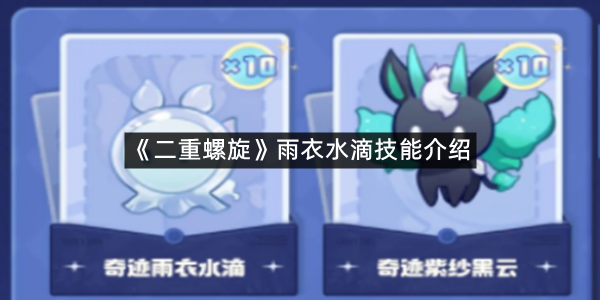 以上就是指玩手游网小编为你带来的《二重螺旋》雨衣水滴技能介绍的全部内容,更多精彩游戏资讯攻略尽在指玩手游网,感兴趣的小伙伴欢迎点击关注收藏本网站哦。
