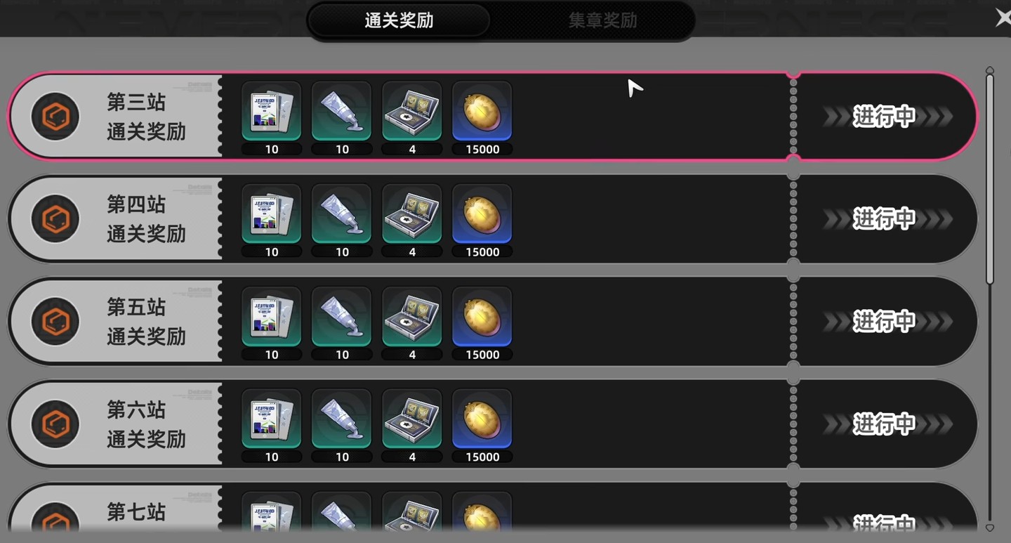 每个关卡都有特定目标,例如第 3 关要求同时击败全部敌人、剩余时间超过 240 秒及 300 秒三项条件,只有全部达成才能领取全部徽章。