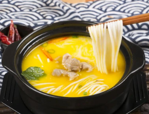 金汤:指的是汤底清澈金黄,味道鲜美,是过桥米线的重要特色;