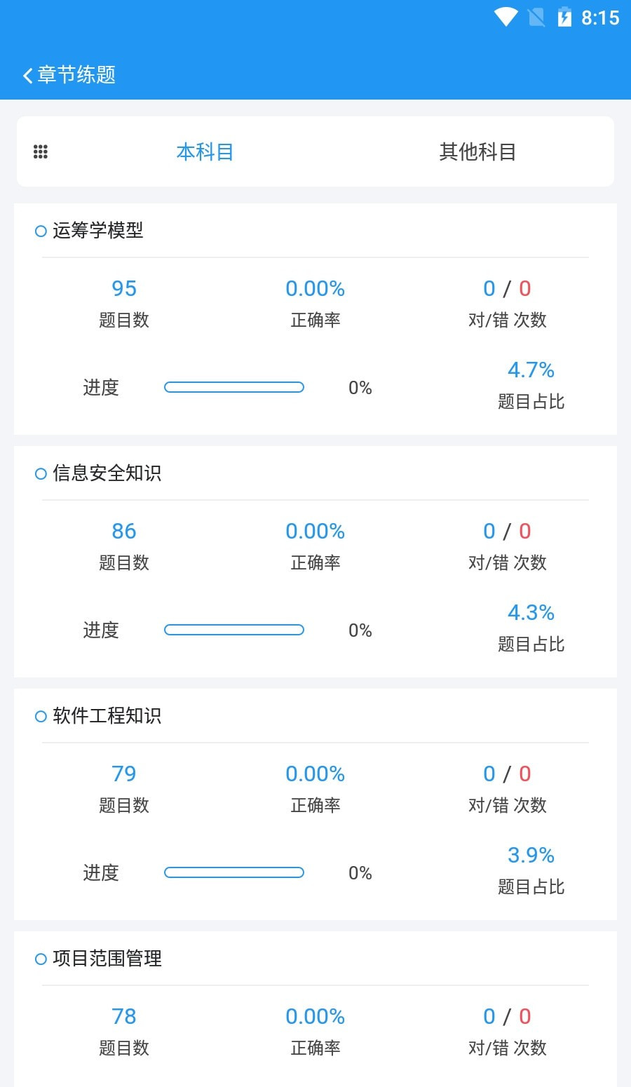 2、软考真题自动记录完成的习题数量、准确率和练习时间,全面了解复习效率。