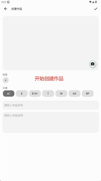 4、创建作品并编辑完成后,点击右上角的【√】按钮,就可以保存并发布作品了。