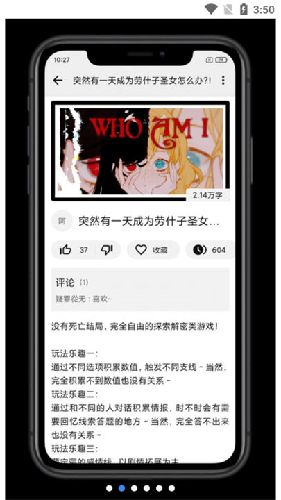 1、将传统的阅读体验与文字游戏机制相结合,让用户在体验故事的同时享受创作的乐趣。