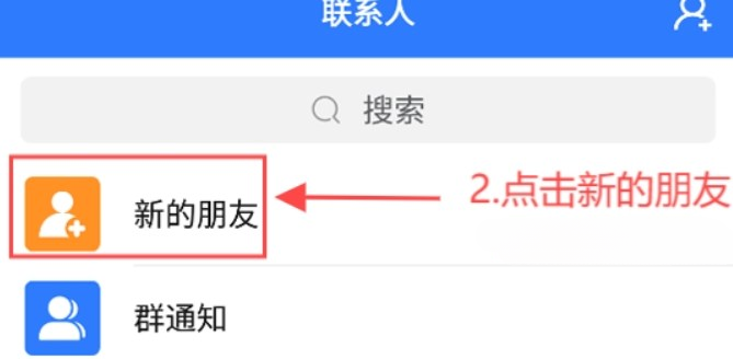 2、在联系人界面中找到并点击“新的朋友”选项。