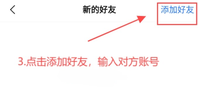 3、进入新的好友界面后,点击“添加好友”,然后输入对方的账号或手机号进行搜索并添加。