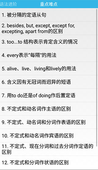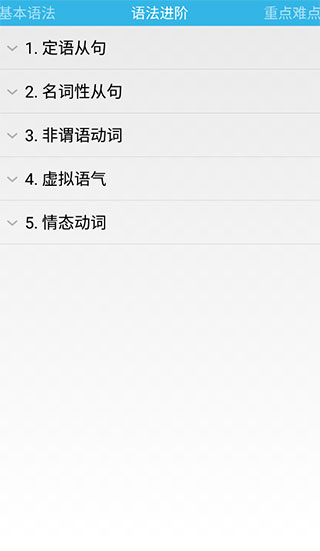 定语从句、名词性从句、非谓语动词、虚拟语气和情态动词,这些内容属于语法的进阶部分,需要更加深入理解和掌握。