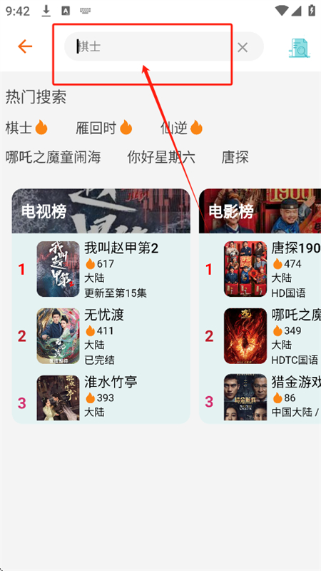 2、直接在搜索框中输入电影或电视作品的名称,单击“搜索”。
