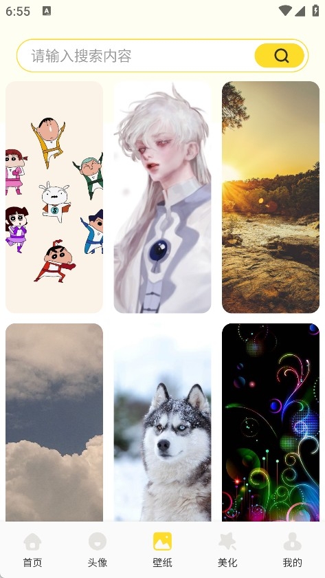 3、在壁纸页面提供了非常多漂亮的壁纸,还可以实时搜索不同类型的内容;
