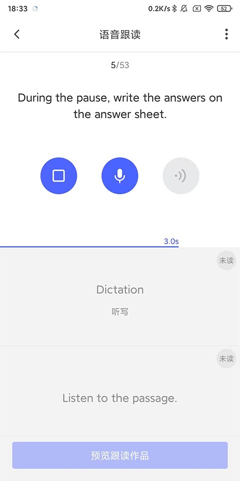 5、点击【预览跟读作品】,即可正式开始跟读练习!