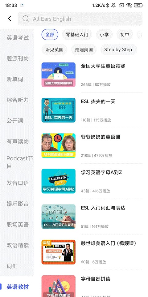 3、参加听力训练项目,提高你的英语水平,支持批量下载,离线使用,可以在教室或地铁上随时使用。