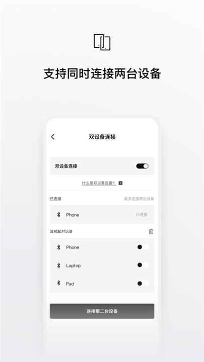 4、一副耳机可同时连接两台蓝牙设备,支持设备间自由切换。