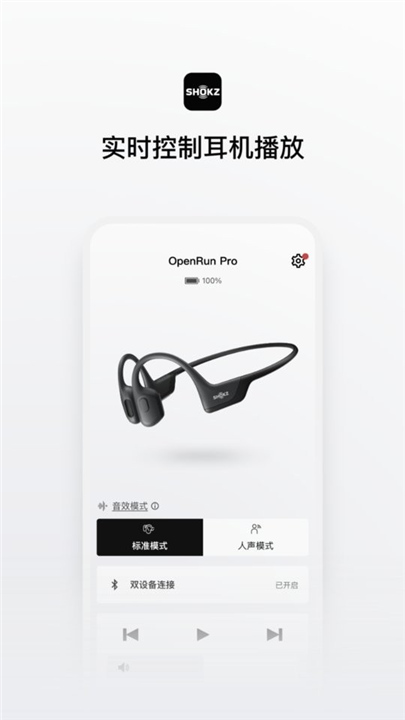 2、Shokz可以在应用程序上调整音量、暂停/播放和切换歌曲。