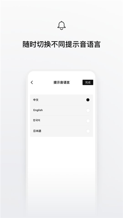 2、耳机内置中文、英文、日文、韩文四种提示音。您可以根据自己的需要进行选择。