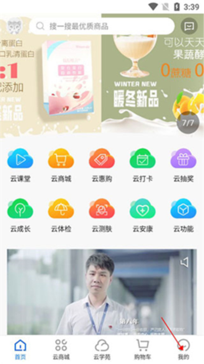 1、打开康婷云生活App,进入首页后点击下方的【我的】选项。