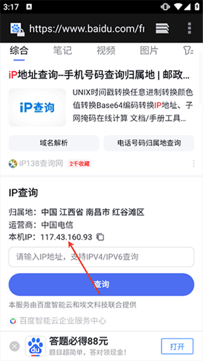 8、然后打开需要抓包的App或网页,例如要抓取自己IP地址的数据,可以在点击网页上的【查询】按钮前,先开启Reqable app上的抓包按钮,然后再点击【查询】按钮。操作完成后关闭抓包,App会生成缩略图,方便用户实时查看抓取情况。