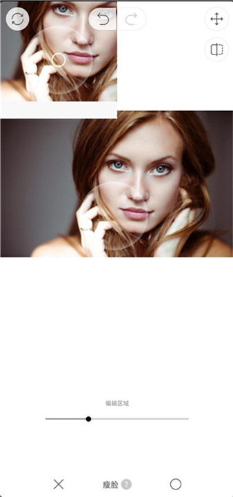 5、在图片上选择需要瘦脸的具体区域进行调整;