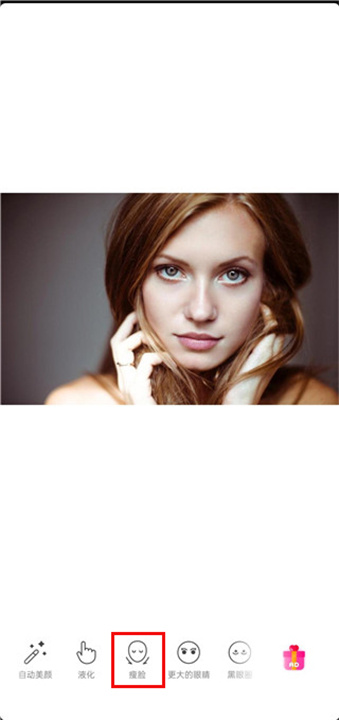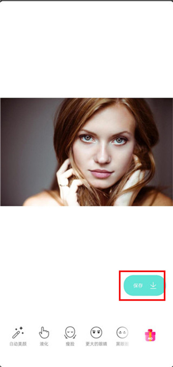 6、瘦脸效果调整完成后,点击保存按钮,将修改后的图片保存到相册。