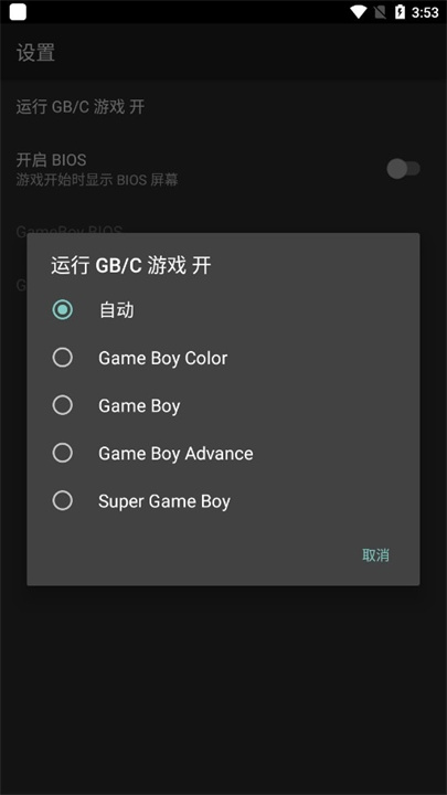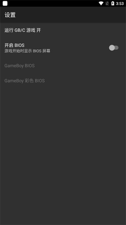 1、在本站下载安装GB模拟器后,打开应用进入主界面,点击右上角的三个点图标,再选择“setting”进入设置菜单;