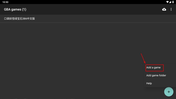1、首先启动GB模拟器,进入主界面后,点击右下角的“+”号,然后选择“Add a game”来添加新的游戏文件;