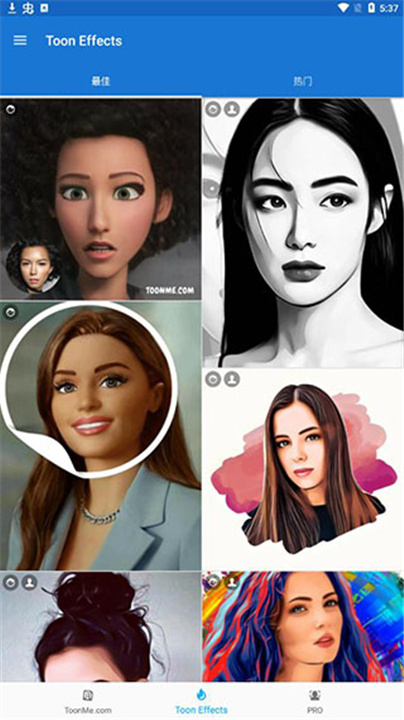 4、toonme使用卡通魔术中的人工智能自动再现卡通或矢量风格的肖像。