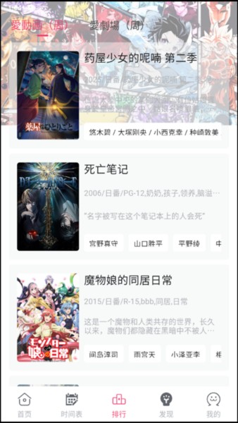 3、在排行榜界面中,我们能够看到动漫和剧场版每周的实时排行榜,这可以帮助我们合理安排追番计划。