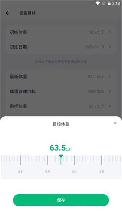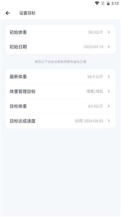 3、根据自身需求调整目标体重及相关信息。
