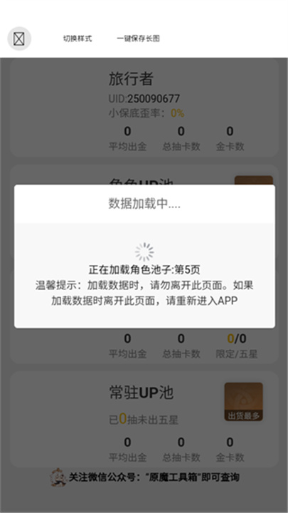 3、在主页点击“抽卡查询”,进入抽卡查询界面。抽卡链接可以通过“原魔工具箱”公众号教程获取,也可以使用“原神Link”获取,本网站可搜索并下载该工具。