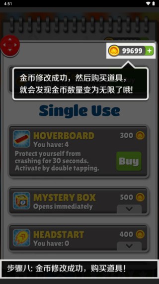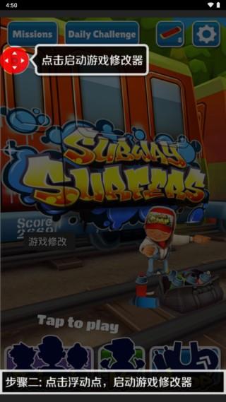 3、进入游戏(这里以地铁跑酷为例),点击图标即可启动游戏修改器。