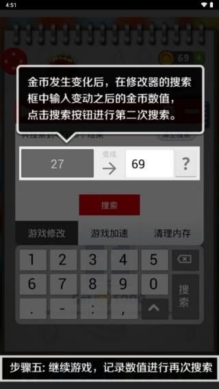5、如果搜索结果与预期不符,则需要重新获取新的金币数值再进行搜索。