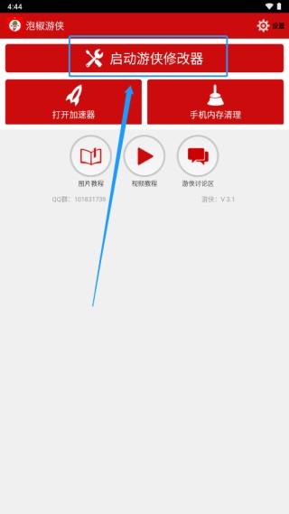 1、打开泡椒游侠软件后,点击界面上的“启动泡椒游侠”。