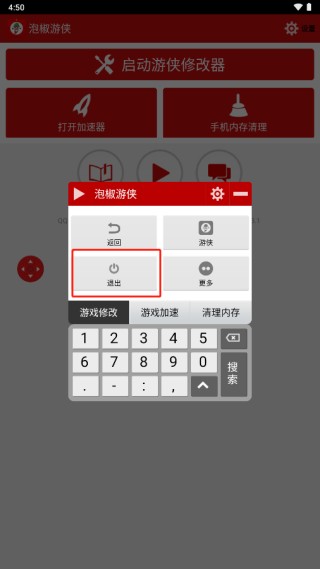 10、再次点击悬浮球,然后选择退出,即可顺利退出修改器。