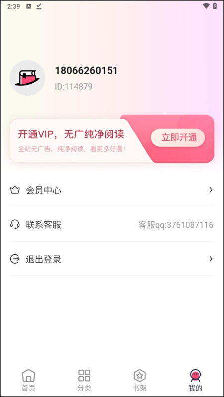 4、在“我的”页面,可以完成账号的注册和登录操作,还能开通VIP,享受无广告、干净流畅的阅读体验。