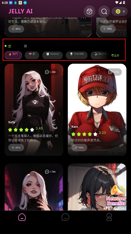 1、支持根据性别和个性标签对AI角色进行快速筛选,方便用户找到理想的交流对象。