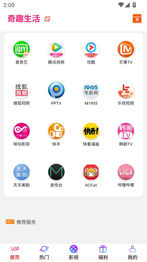 1、下载奇趣影视,首页汇集了多个视频平台,包括爱奇艺、腾讯、优酷、芒果TV等,你可以自由观看各大平台的精彩视频资源。