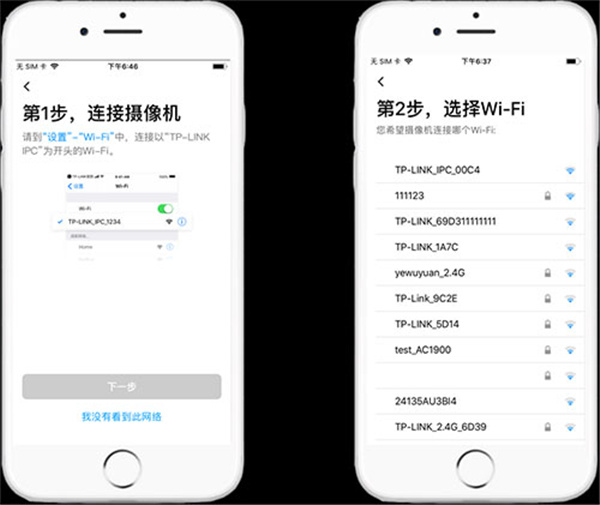 2、连接摄像头自带的Wi-Fi(通常以TP-LINK_IPC开头),点击【下一步】,选择你要连接的Wi-Fi并输入密码,设备就可以成功添加了。