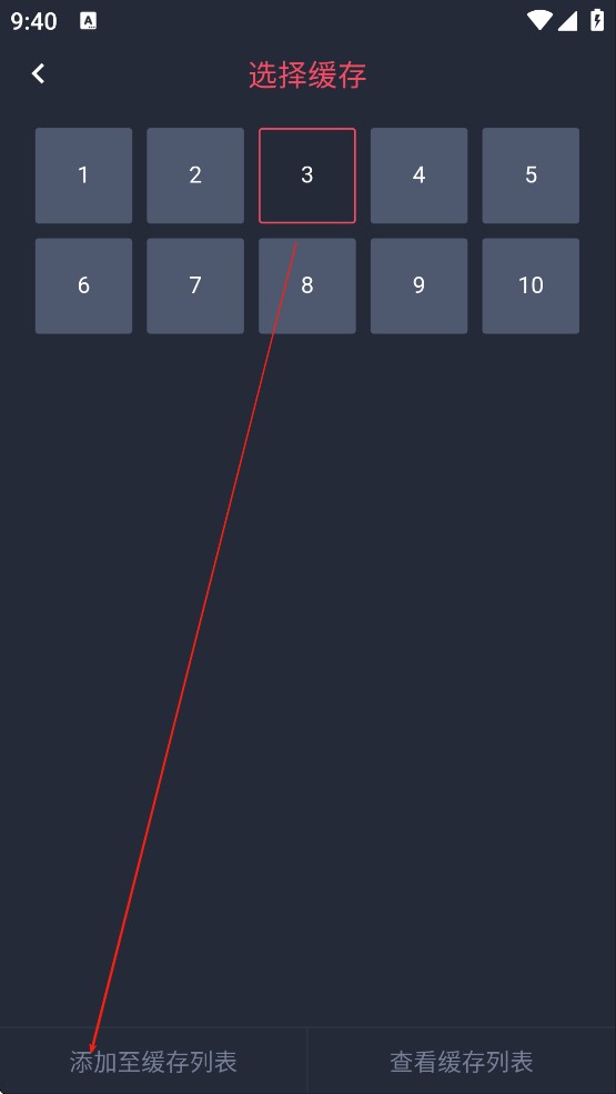 3、选择你想要缓存的具体集数,然后点击“添加至缓存列表”。