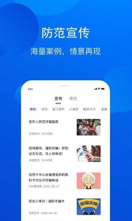 3、呈现近期诈骗高发类型、安全提醒及防诈骗知识,让用户长期保持警惕状态。