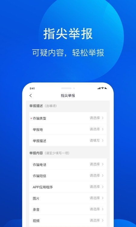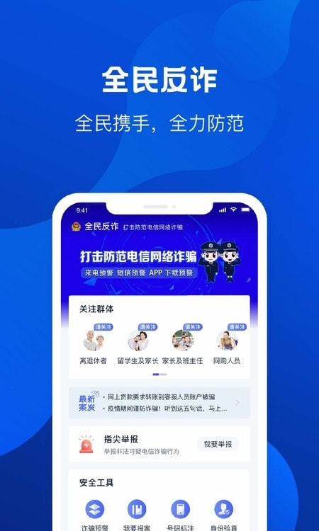 全民反诈方便公众举报电信和网络诈骗犯罪,为电信和网络诈骗案件提供线索,减少此类案件的发生,避免公众财产损失,设有反欺诈宣传、预警提示、线索提供、指尖举报、风险提示、在线答疑、安全检查等功能模块。
