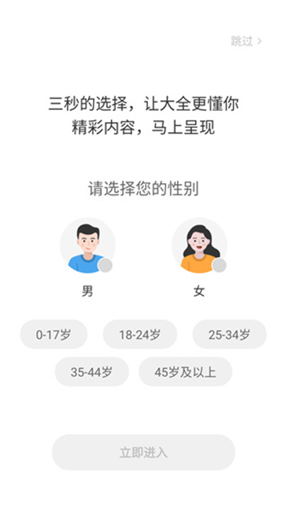1、只需花三秒选择,大全就能更好地了解您的喜好。请先选择性别和年龄,这样我们就能推荐最适合您的内容。