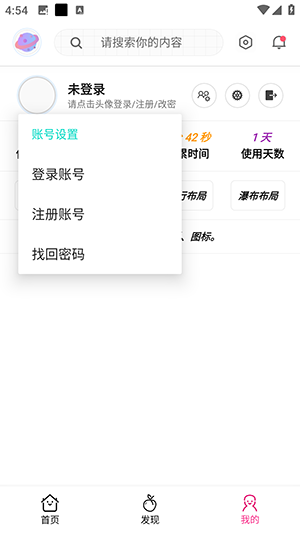 2、选择“登录账号”或者“注册账号”。如果你已经有账号,直接点“登录账号”就行。