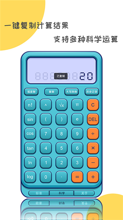 4、二次元计算器科学计算三角函数,辅助角度和弧度计算,在计算过程中随时显示计算结果。