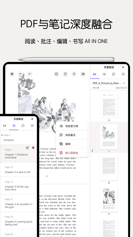 Notein一笔记数千页的PDF文件可以在一个音符瞬间打开,连续滚动翻页,可以快速加载,实时刷新,当你的指尖停下来的那一刻,每一个内容都以绝对清晰的方式呈现在你眼前,提供更智能的笔记管理,无限层文件夹给你更多的自由和空间来管理文档。你可以随心所欲地嵌套很多层,可以帮助您轻松设置pdf文件和笔记的大纲和注释,并支持对层次结构的修改、编辑和拖放调整。使学习材料结构清晰,快速跳转到需要的页面,关键内容立即被理解。