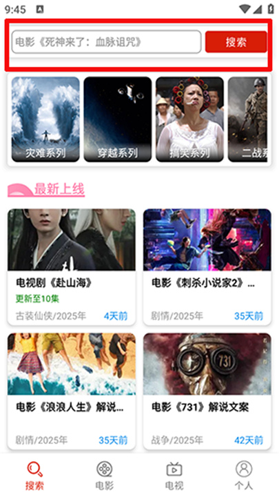 2、如果想快速找到特定影片,可以点击顶部的搜索框,输入关键词就行。