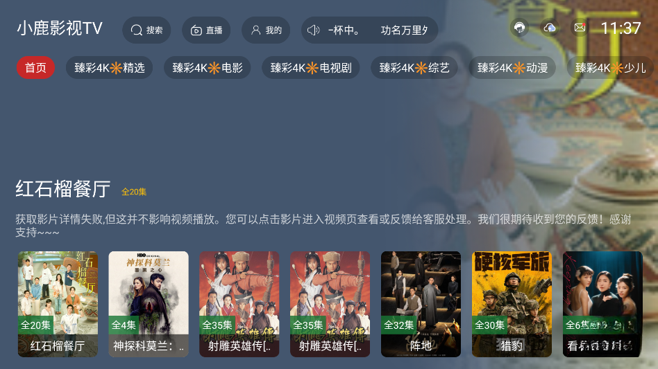 2、小鹿影视tv界面为电视和盒子设计,操作逻辑符合遥控器的使用习惯。