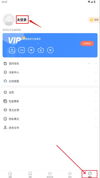 2、在“我的”页面里,点头像旁边的【未登录】。
