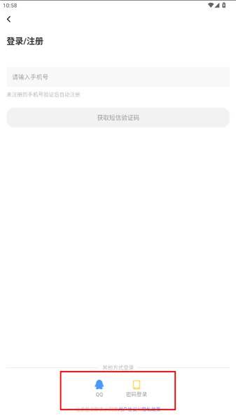 3、在登录页面里,你可以选择用手机号、QQ或者密码等多种方式登录。