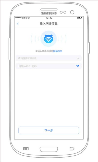 第三步:淘云互动选择你要连接的WIFI账号,并输入相应的密码,之后点击下一步继续操作。