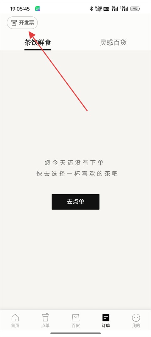 1、打开喜茶GOApp,进入后点击页面中的“订单”选项。