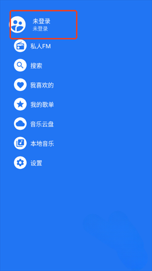 3、在弹出的菜单中,点击“未登录”按钮,进入登录界面。